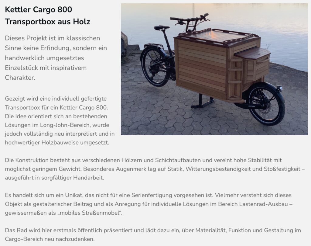 Hersteller der Box und Nutzer des Rades ist selbst Gewerbetreibender im Handwerk.